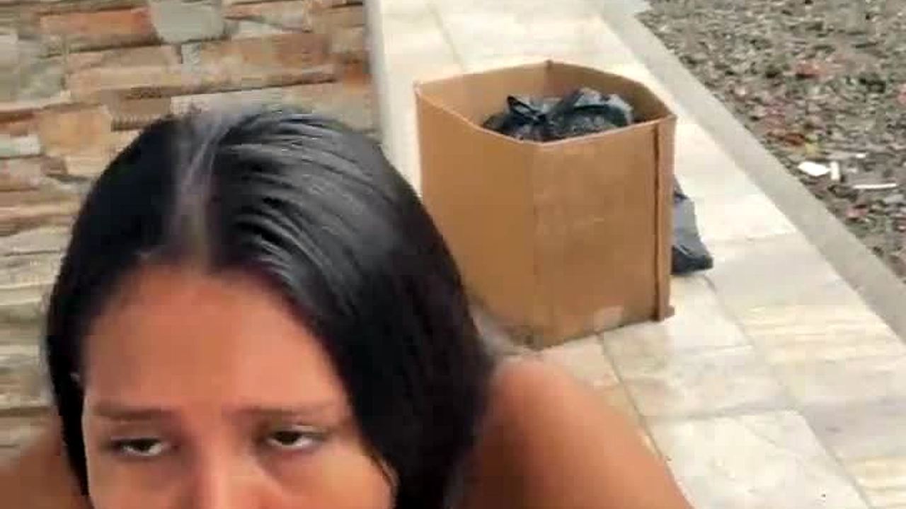 Hey, watch this slutty teen suck a stranger’s cock on the street