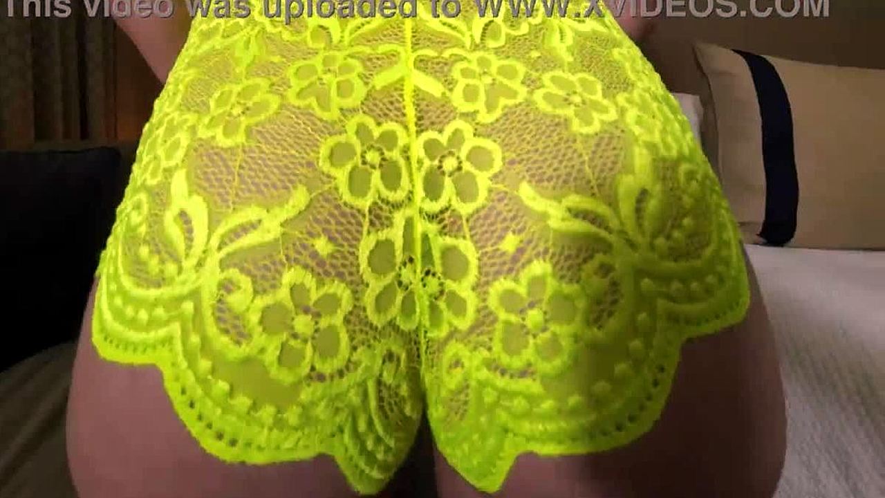Gorgeous tgirl with big tits fingers her stunning butt in sexy lingerie.