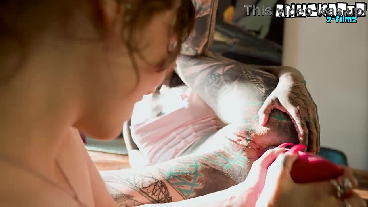 Tattooed blonde in tight pajamas takes dick and cum on her ass